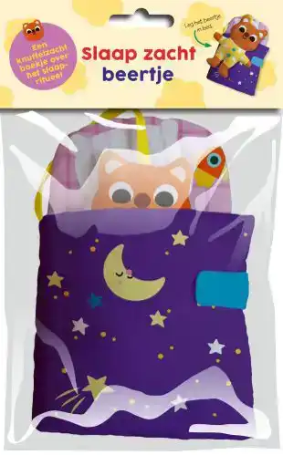 Een schattig en origineel linnenboekje voor de allerkleinsten dat over het ritueel van het slapengaan gaat, met een beertje dat ze in bed kunnen stoppen.